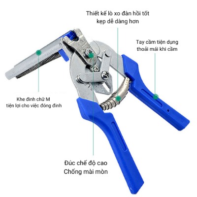 • Kìm kẹp ghim chuồng gà, bồ câu, thỏ bán tự động lắp ráp các loại lồng, chuồng nuôi công nghiệp nhanh chóng, chỉ 1 thao tác bóp kìm là được 1 mối ghép.