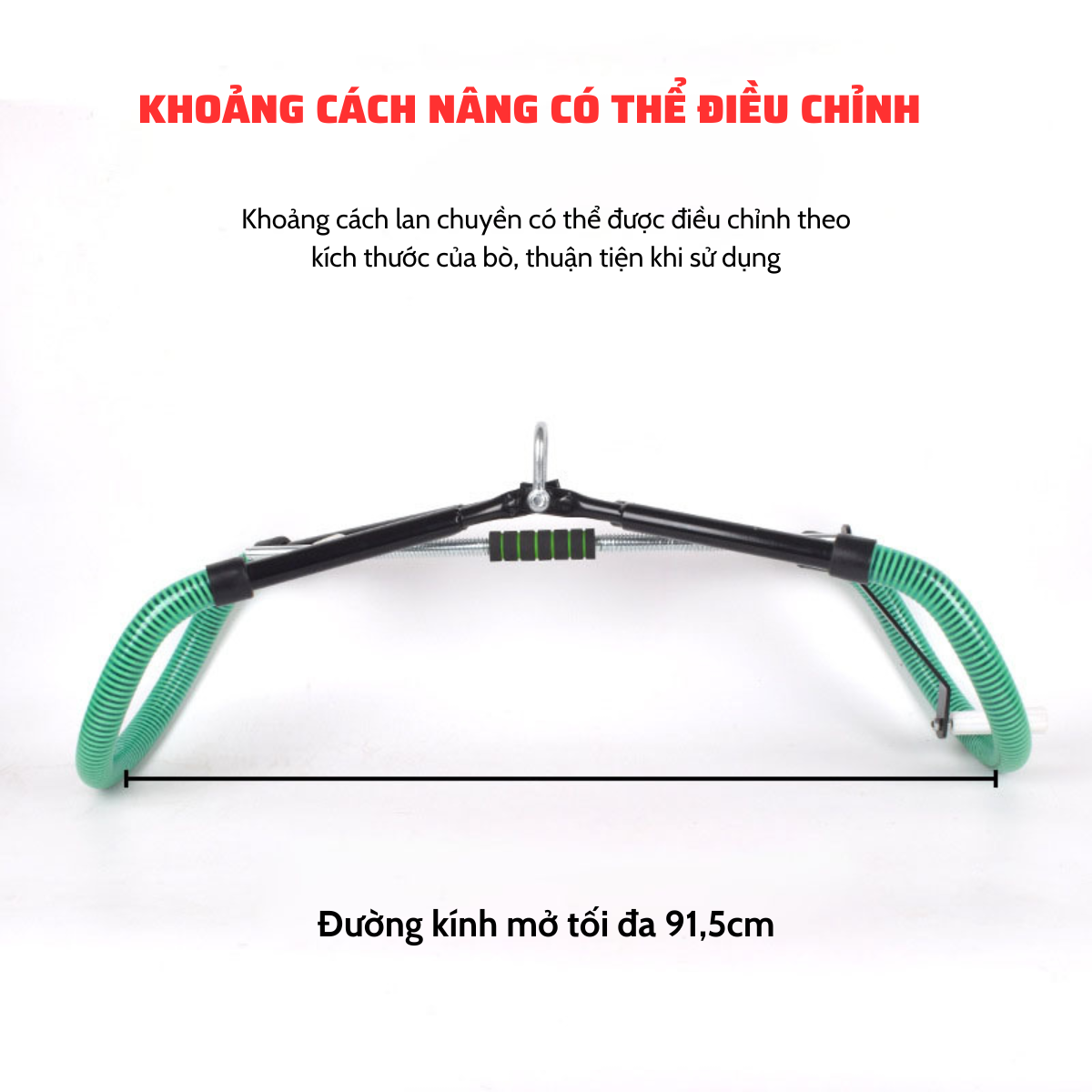- Giá nâng bò thú y được thiết kế với cấu trúc thép chắc chắn, có các bộ phận hỗ trợ để nâng đỡ cơ thể bò một cách an toàn. Khi một con bò bị bại liệt, người chăn nuôi sẽ đặt nó vào giá, sử dụng các đai để cố định và sau đó nhẹ nhàng nâng bò lên. Quá trình này không chỉ giúp bò đứng dậy mà còn cải thiện tuần hoàn máu, giảm đau và ngăn ngừa các biến chứng do nằm lâu.