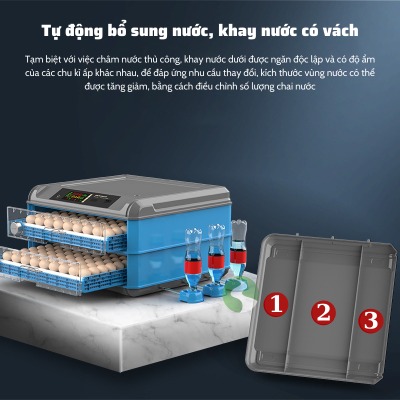 -Ngoài ra, Máy ấp trứng gà mini cũng có khả năng tự động xoay trứng giúp cho trứng gà được ấp đều, tránh tình trạng trứng không nở hoặc bị nở dở.