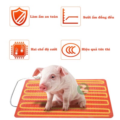 Dùng để sưởi ấm cho lợn, khi dùng chỉ cần cắn điện tấm sưởi sẽ ấm nên bằng nhiệt độ cơ thể lợn cho lợn...